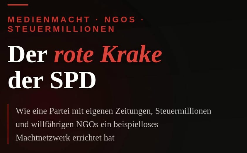 Man muss es so deutlich sagen: Was die SPD in den letzten Jahrzehnten aufgebaut hat, ist kein politisches Netzwerk. Es ist ein Versorgungssystem. Ein Organismus, der sich aus Steuergeldern nährt, über eigene Medien absichert und über sogenannte „zivilgesellschaftliche“ Organisationen politische Gegner bekämpft – und das alles unter dem Deckmantel der Demokratieförderung.