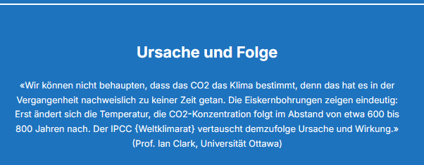Korrelationen beweisen gar nichts, bis auf die Möglichkeit, dass etwas vorhanden sein könnte. So ist es auch mit dem Klima und CO2. Interessanterweise hat sich der Weltklimarat IPPC auf das Kohlendioxid konzentriert. Dieses Gas kann tatsächlich auf atmosphärische Prozesse wirken, da es Bestandteil der Atmosphäre ist. Die anderen Faktoren sind alle mit dem Wasser verbunden, etwa Wasserdampf und Wassereis, insgesamt sind es 17. Die vom Wasser abhängigen Prozesse sind aber nicht Gegenstand der Klimaforschung, sondern nur das CO2. Ich habe mir mal den Spaß gemacht und die damalige Vorsitzende des Alfred-Wegener-Instituts, Karin Lochte, dazu gefragt, warum sie sich so sehr auf das CO2 konzentriert und nicht auf den Wasserdampf. Sie antwortete, dass man den nicht steuern könne… Mit anderen Worten: Wir ergreifen den Schwanz des Hundes und versuchen, mit dem Hund zu wackeln.