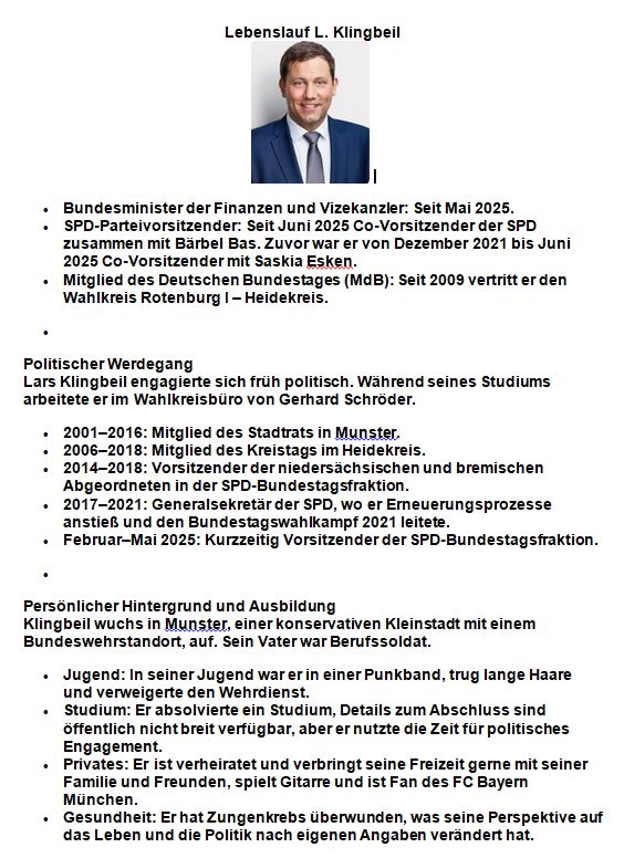 Hier könnte man beliebig mit div. Politikern/innen fortfahren. Ich empfehle aber immer sich die getürkten Lebensläufe der Abgeordneten in den Landtagen und im Bundestag anzuschauen. Recherche hilft schnell einen Blick hinter die Kulissen zu werfen