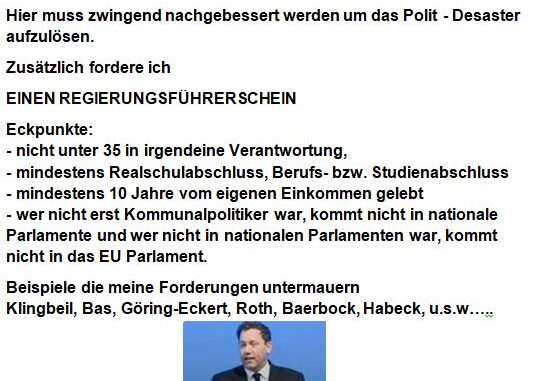 Hier muss zwingend nachgebessert werden um das Polit – Desaster aufzulösen.