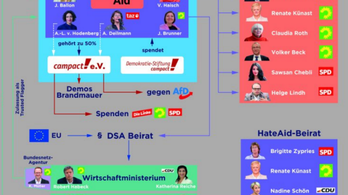 Der Versuch, kritische Berichterstattung zu zensieren, lässt die kürzlich erfolgte Zulassung von HateAid als Trusted Flagger besonders fragwürdig erscheinen. Denn in dieser Funktion erlangt die Organisation Vorrechte beim Melden von Äußerungen in sozialen Netzwerken: Wenn HateAid bei Plattformen die Löschung von Inhalten beantragt, müssen die Plattformen diese Meldungen prioritär behandeln.